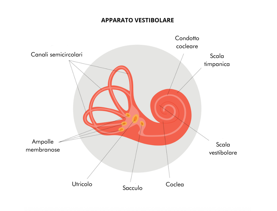 • Acufeni o ipoacusia: ronzii nelle orecchie o riduzione dell’udito, che possono accompagnare i disturbi vestibolari